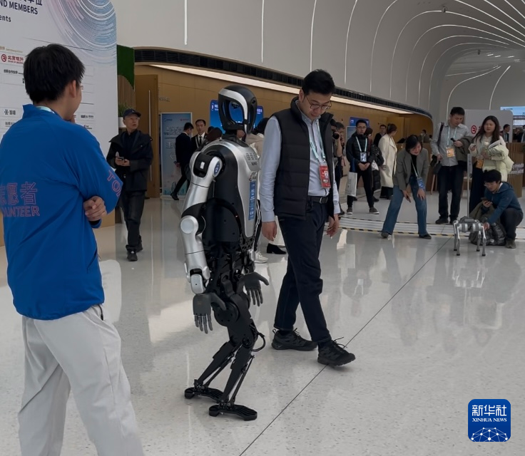 在中关村国际创新中心内,人形机器人“夸父”每天都很忙,它承担着迎宾工作,为公众解答疑问、提供讲解和指引服务等,碰到有人问路也能自如为其带路。